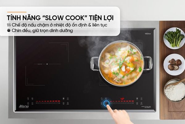 Nhờ chế độ nấu Slow Cook, bếp cho phép chế biến món ăn ở nhiệt độ thấp và ổn định, giúp giữ nguyên các dưỡng chất tự nhiên trong thực phẩm. Chế độ này rất lý tưởng cho các món hầm, ninh hay súp, cho phép thực phẩm chín đều từ bên trong mà không bị ảnh hưởng bởi nhiệt độ dao động, tạo ra những món ăn ngon và bổ dưỡng, phù hợp cho những bữa ăn gia đình đầy dinh dưỡng và ấm cúng.