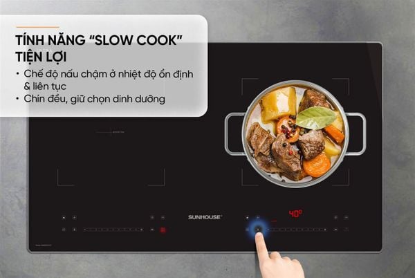 Bếp từ âm Sunhouse này được tích hợp nhiều chế độ nấu ăn tiện lợi như chế độ chiên, xào, nấu nhanh… Đặc biệt là tính năng nấu chậm ở nhiệt độ thấp và ổn định trong suốt quá trình nấu giúp bếp không bị đóng ngắt liên tục như các dòng bếp từ thông thường. Điều này sẽ giúp kiểm soát và đảm bảo nhiệt độ luôn chính xác, phù hợp với những món ăn cần chế biến cầu kỳ, ninh, hầm… cần nhiều thời gian.