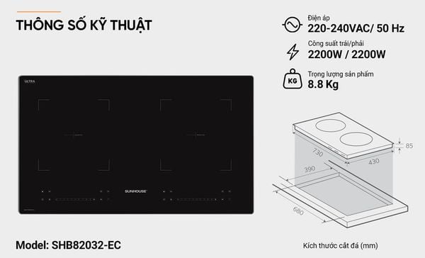 Chiếc bếp từ Sunhouse SHB82032-EC này sở hữu kiểu dáng tinh tế, hiện đại đồng thời được lắp đặt âm nhằm tối ưu diện tích sử dụng, đem tới sự tiện nghi cho bất cứ không gian bếp nào.