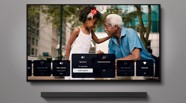 Hoàn toàn đắm mình. Công nghệ Nâng cấp lên âm thanh vòm 3D tạo ra âm thanh vòm giả lập từ phía trên và hai bên chỉ bằng loa của TV. Ngay cả âm thanh 2 kênh và 5.1 kênh cũng sẽ được nâng cấp lên âm thanh 5.1.2 kênh sống động. Ngoài ra, khả năng hỗ trợ Dolby Atmos® và DTS:X® còn mang đến bạn âm thanh không gian khó quên.
