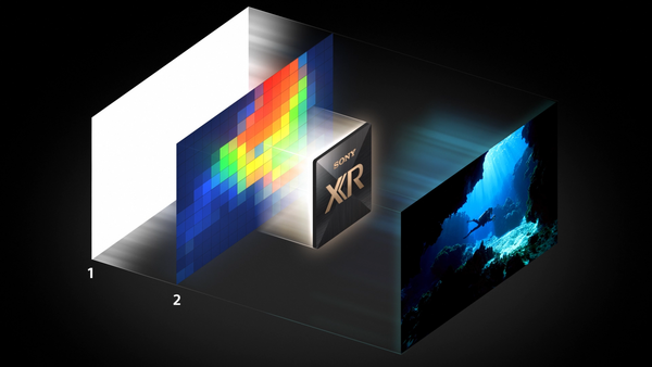 Vùng sáng có nhiều màu sắc và độ tương phản cao hơn. TV này có tấm nền độ sáng cao (1) và cảm biến nhiệt độ (2) kết hợp với XR Contrast Booster kiểm soát chính xác ánh sáng để cho ra hình ảnh màu đen thuần khiết tươi sáng hơn.