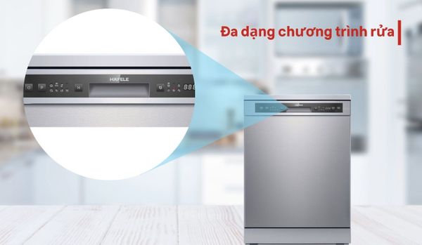 Máy rửa bát Hafele HDW-F60G được trang bị bảng điều khiển cơ, hiển thị điện tử rõ nét và dễ dàng thao tác sử dụng. Máy gồm 2 khoang lớn với sức chứa 12 bộ bát đĩa Châu Âu, tương đương với 2-3 mâm bát gia đình Việt, có thể rửa được cả xoong nồi, phù hợp với các gia đình từ 5-10 thành viên.