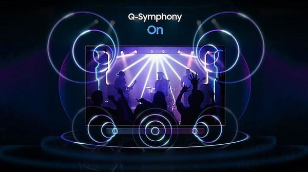 – Q-symphony Next đồng bộ liền mạch âm thanh của loa thanh và dàn loa của tivi Samsung cho bạn thăng hoa trong không gian tràn ngập âm nhạc.