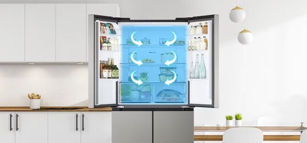 Tủ lạnh 4 cánh được trang bị hệ thống Multi Air Flow giúp khí lạnh lưu thông đều khắp mọi ngóc ngách. Nhờ đó, mọi thực phẩm dù đặt ở cánh tủ hay góc sâu bên trong đều nhận được lượng khí lạnh ổn định, giữ độ tươi ngon lâu dài.