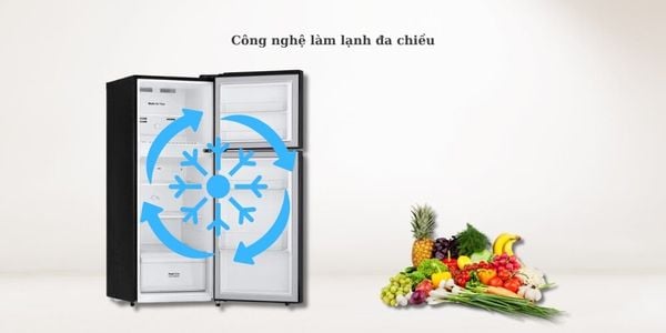 Tủ lạnh LG ;trang bị công nghệ làm lạnh đa chiều để mọi ngóc ngách bên trong tủ lạnh đều nhận đủ hơi lạnh cần thiết, từ đó thực phẩm giữ được hương vị tươi ngon và dưỡng chất trong thời gian lâu hơn. Nhờ đó, người dùng sẽ không còn phải lo lắng về tình trạng thực phẩm bị đóng băng hoặc bị hỏng ở những vị trí khó tiếp cận luồng khí lạnh.