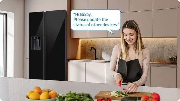Trợ lý giọng nói Bixby được tích hợp sẵn trên tủ, giúp bạn dễ dàng điều chỉnh các cài đặt, chọn chức năng và đặt các câu hỏi bằng giọng nói. Với bản cập nhật mới nhất, Bixby còn có khả năng hiểu ngữ cảnh cuộc hội thoại trước đó và nhận nhiều lệnh trong cùng một câu.
