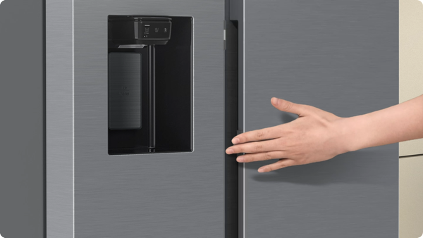 Cảm biến được tích hợp ở hai bên cánh tủ, giúp bạn dễ dàng mở cửa* chỉ với một chạm ngay cả khi đang cầm nắm đầy tay. Đèn cảm biến giúp bạn xác định vị trí nhanh chóng, đồng thời tủ phát ra âm thanh thông báo khi cửa mở. Đặc biệt, thiết kế phẳng không tay nắm mang đến vẻ ngoài tinh tế và hiện đại.